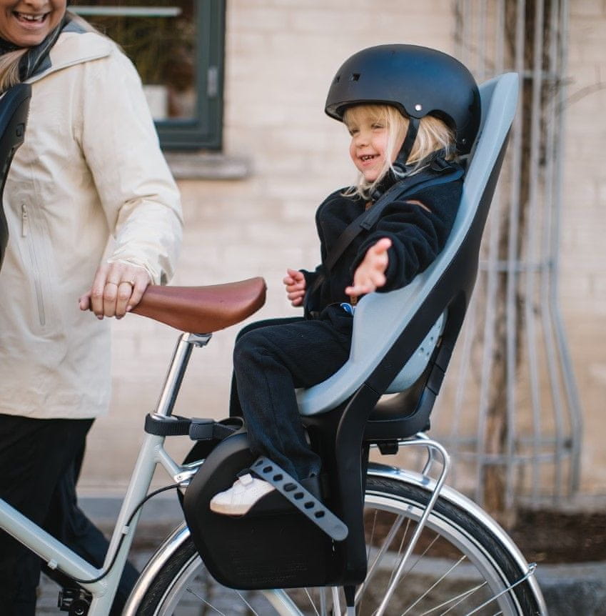 Thule otroški sedež nudi otroku udobno sedenje in varno vožnjo z vami na kolesu.