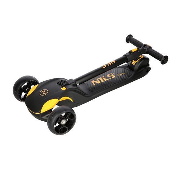 HLB122 NILS FUN je trikolesni skiro, ki je idealna rešitev za najmlajše ljubitelje drsanja. Tri kolesa vam bodo olajšala učenje vožnje s skirojem in vam omogočila pridobivanje izkušenj. HLB122 ima intuitiven nadzorni sistem. Volan služi predvsem ohranjanju ravnotežja, manevri pa se izvajajo z uravnoteženjem in nagibanjem volana na eno ali drugo stran. Ta rešitev je odlična za najmlajše ljubitelje vožnje. Zahvaljujoč nastavljivemu volanu lahko enostavno prilagodimo opremo otrokovi višini, kar vam omogoča tudi daljše uživanje na skiroju. Prepoznavna prednost HLB122 so svetleča LED kolesa spredaj in zadaj! Poleg odličnega vizualnega učinka poskrbijo za veliko zabave za otroke, predvsem pa naredijo uporabnika bolj opaznega. Skuter je opremljen z nožno zavoro, ki povečuje varnost med vožnjo, visoko udobje pa zagotavljajo ležaji razreda ABEC7.