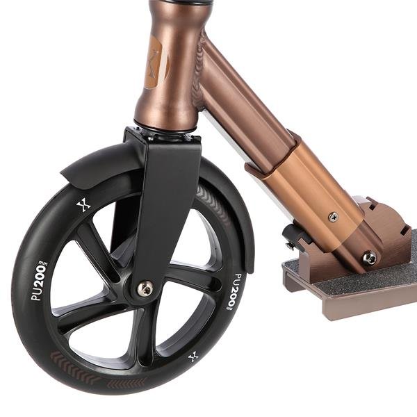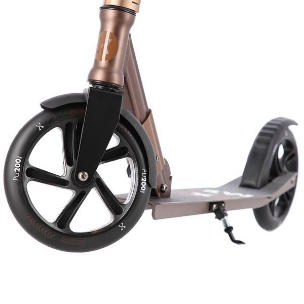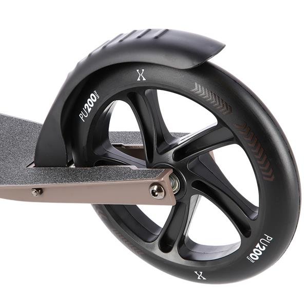 Ravila so opremljena z gumiranimi ročaji, ki zagotavljajo varen oprijem in ne povzročajo odrgnin. Krmilo je opremljeno z gumiranimi ročaji, ki zagotavljajo varen oprijem in ne povzročajo odrgnin. Krmilo je nastavljivo po višini, da ustreza višini uporabnika. HM205 ima dve veliki 200 mm kolesi. Tako lahko skuter gladko manevrira in premaguje neravnine. Ležaji ABEC9 povečujejo stabilnost in gladkost vožnje, zadnja nožna zavora pa zagotavlja varnost.