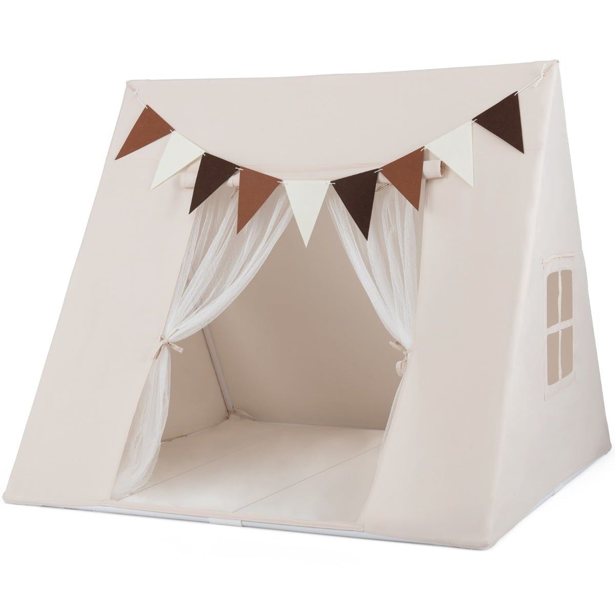 Northix Otroški notranji igralni šotor s pralno podlogo in zastavami, 120 x 120 x 105 cm, breskovo žametno blago, PVC okvir