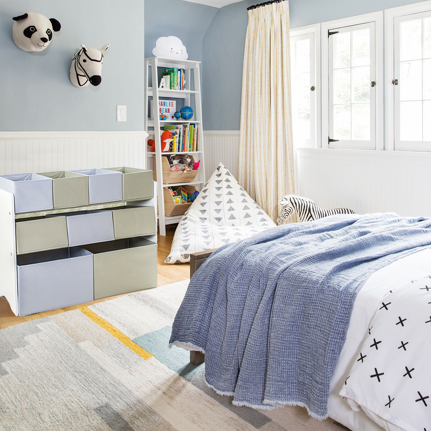 ✳️ 9 POSOD: Polica ima 9 izvlečnih večbarvnih posod iz blaga.