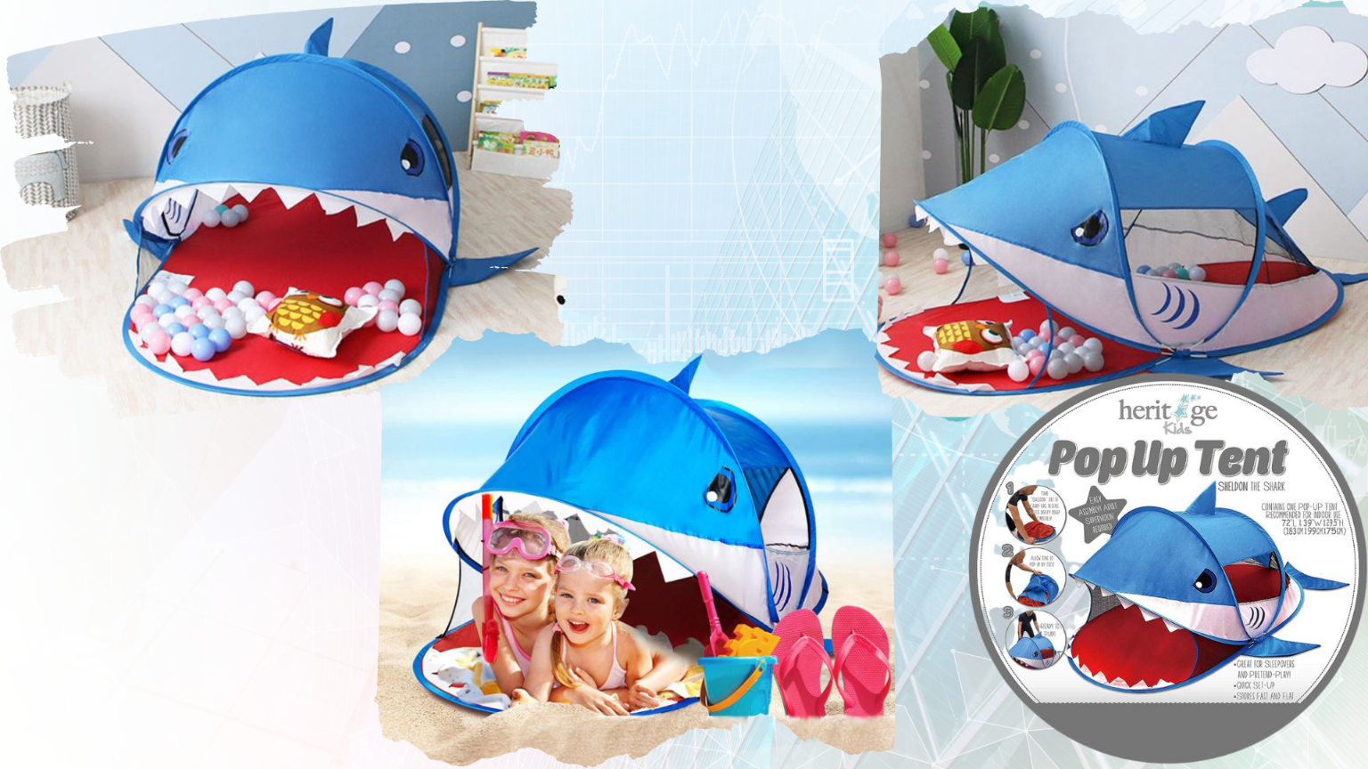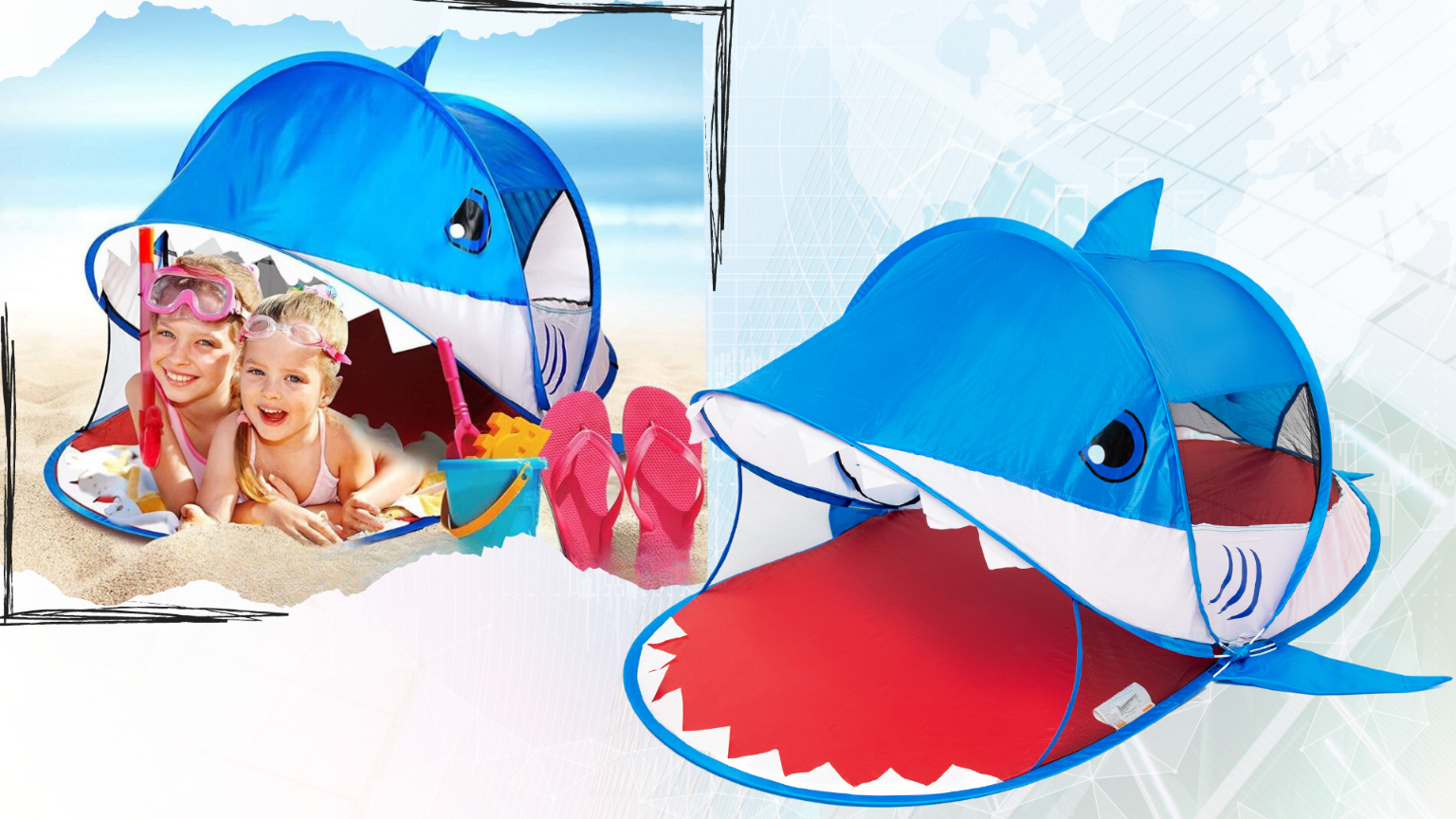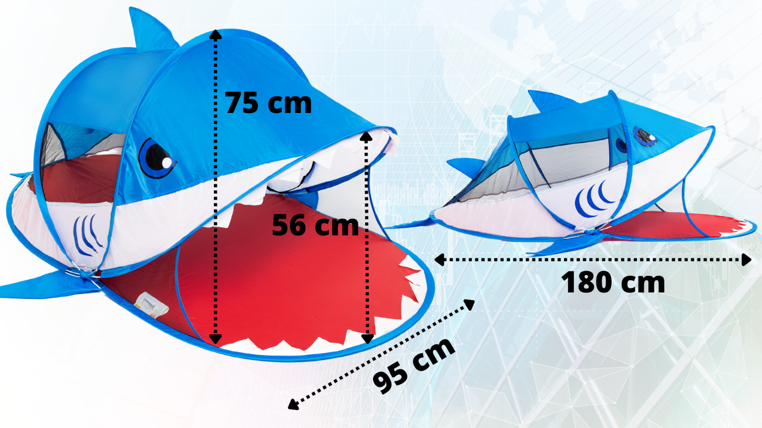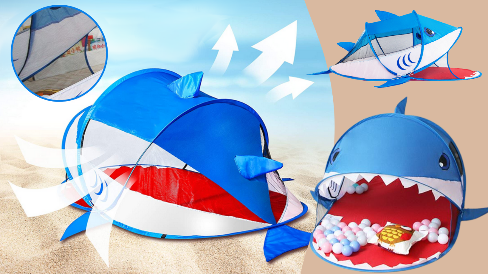 • Šotor v obliki morskega psa – popoln za vsakega otroka, ki se rad igra