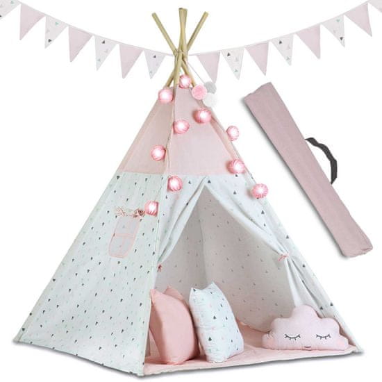 shumee Otroški šotor tipa teepee z girlando in lučkami - roza