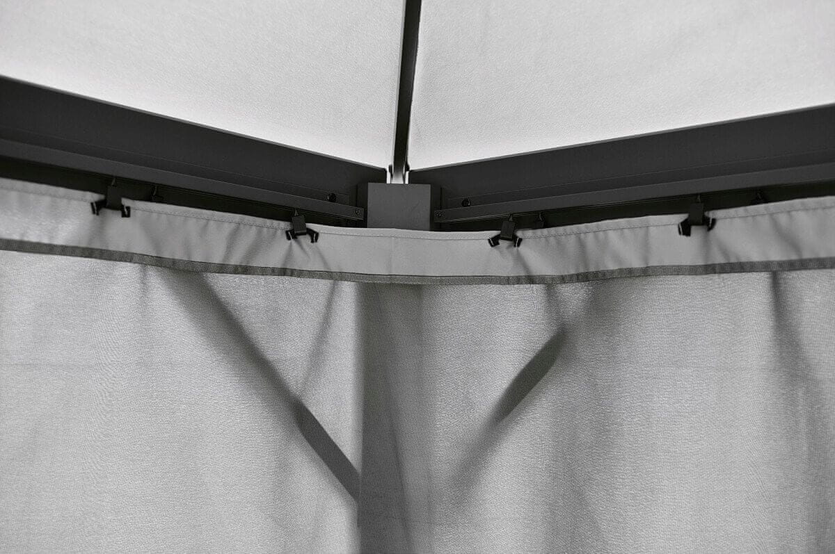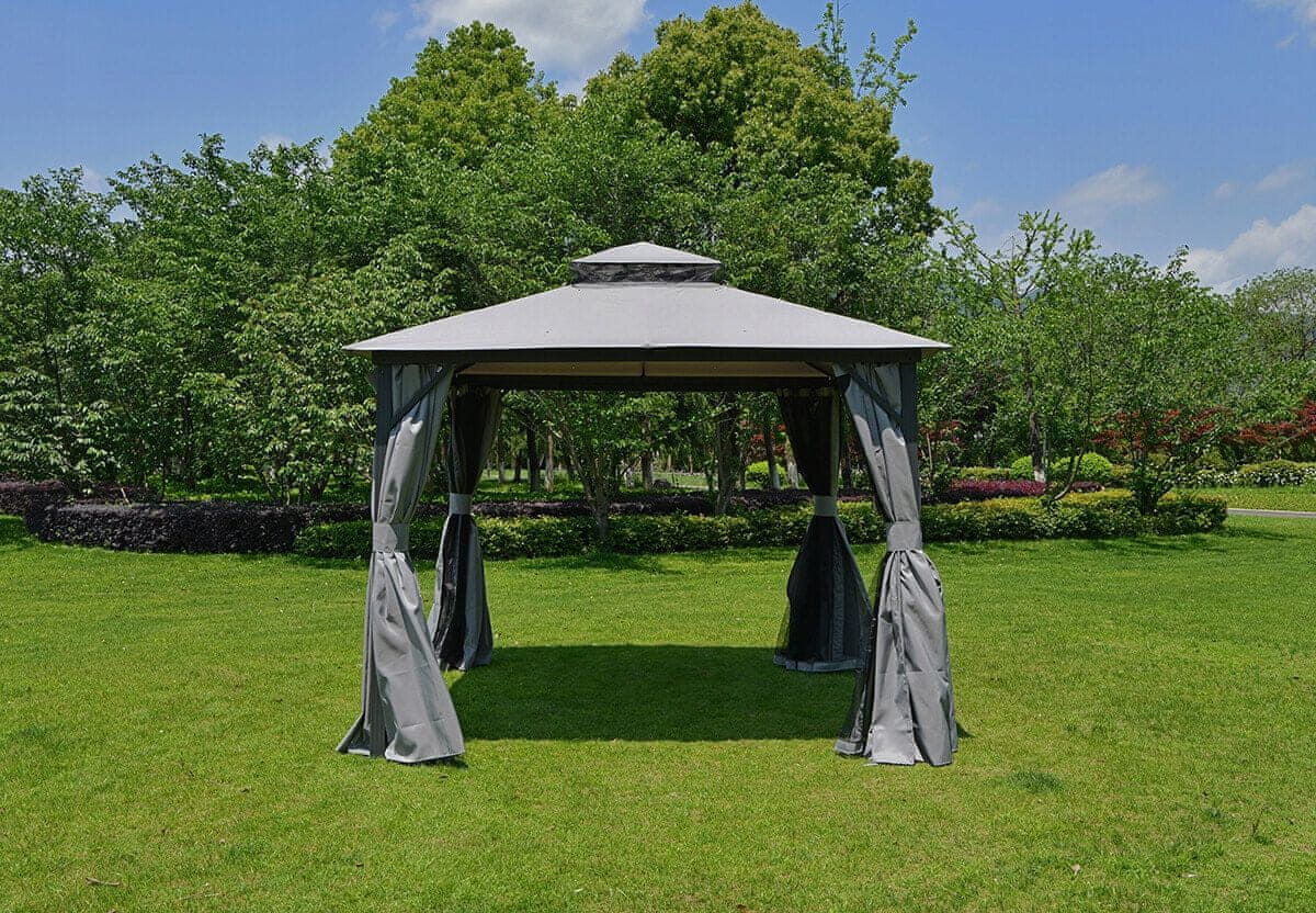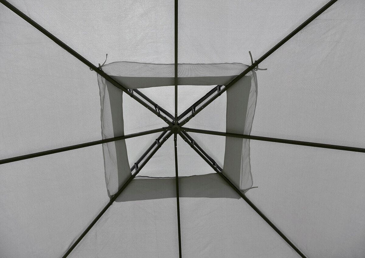 VRTNI PAVILJON JUST GARDEN ALEX SIVA VRTNA UTA PAVILJON ALEX 3×3m SIVA Z MREŽO PROTI KOMARJEM VODOTESNA * TRPEŽNOST * ELEGANCA Fotografija je ilustrativna. Dejanski paviljon se lahko nekoliko razlikuje. DIMENZIJE: Širina – 300 cm Dolžina – 300 cm Višina – 270 cm. LASTNOSTI IZDELKA: Popolna streha za komplet vrtnega pohištva. Vodoodporna streha z odzračevalnikom. Mreža proti komarjem, ki pokriva celotno stransko površino paviljona. Zaščita pred rahlim dežjem in UV-sevanjem. Prezračevalne odprtine z mrežo proti komarjem na strehi. SPODAJ JE PRAVA FOTOGRAFIJA IZDELKA V BEŽ BARVI