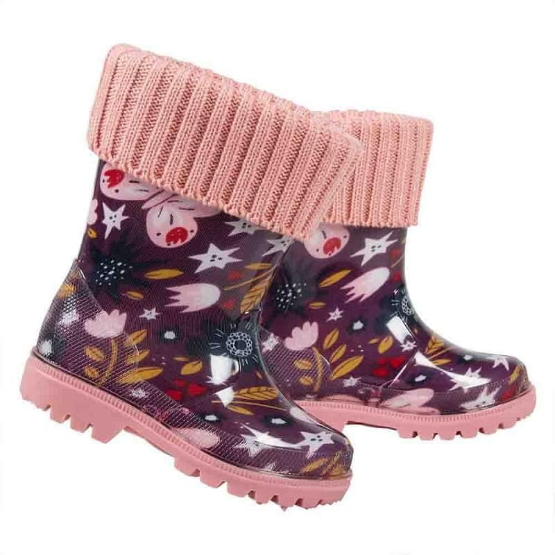 Naj vaše male princeske ostanejo suhe z našimi vijoličnimi podloženimi dežnimi škornji z rožičastim potiskom! Ti škornji so kot nalašč za male avanturistke, ki uživajo v igri na prostem, ne glede na vremenske razmere. Vijolična barva in ljubek potisk rožic prinašata dotik čarobnosti na vsakem koraku, hkrati pa zagotavljajo, da bodo otroška stopala ostala suha in udobna v vsakem vremenu.