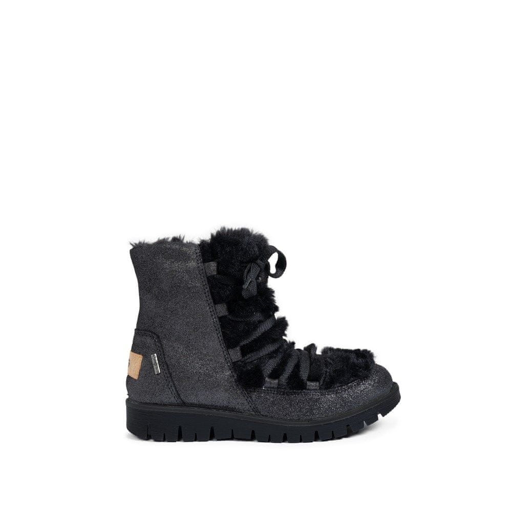 Ti gležnjarji so bili zasnovani za vsakodnevno udobje in zanesljivo zaščito pred mrazom. Zgornji del je izdelan iz naravnega usnja in trpežne tkanine, notranjost pa je podložena z mehko sintetično ovčjo kožo – ta dvojec ovije stopalo v prijetno toploto med šolskimi jutri in vikend sprehodi. 12,5 cm dolg jašek dobro pokriva gleženj, okrogel, zaprt prst pa pušča veliko prostora za prste. Od zunaj lahko vidite, kaj imajo otroci radi: puhasti vstavki vzdolž vezalk in rahel lesk materiala – videz naravnost iz zimske pravljice, vendar v trpežni, „na igrišče odporni“ različici.