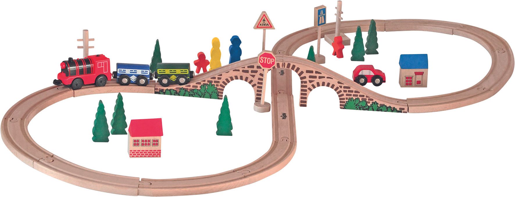 Veliki KOMPLET lesenih figuric vlaka na baterije, 80 kosov ZA3573
