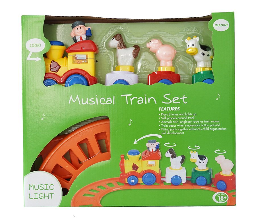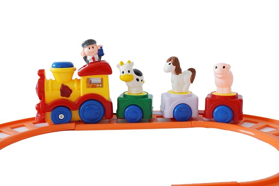 Vlečna proga z velikim motorjem na baterijski pogon. Vlak oddaja zvoke.