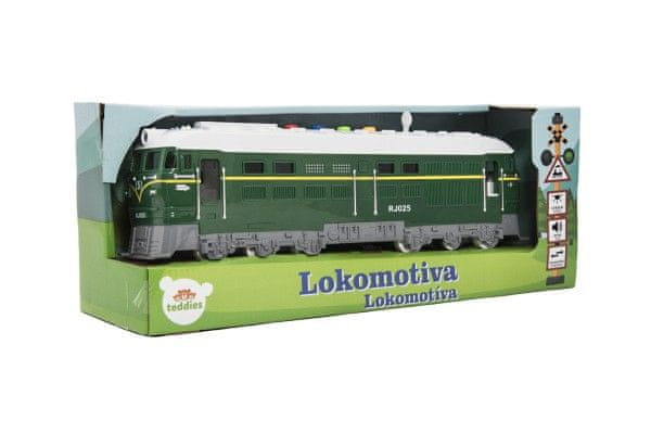 Teddies 35 cm zelena plastična lokomotiva na baterije z zvokom in svetlobo