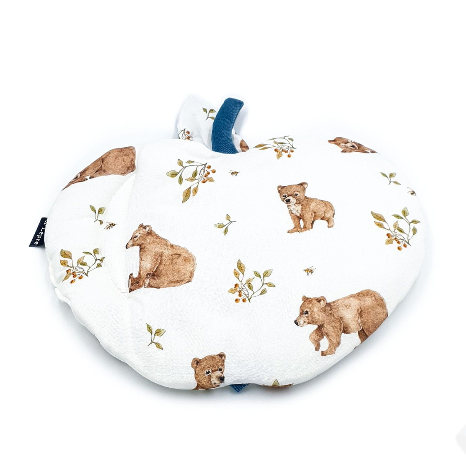 Blazina je napolnjena z antialergijsko, certificirano silikonsko netkano tkanino (ravna blazina) , kar ji daje mehak, lahek in puhast občutek. Dekorativne prešite stvari na jabolku, vejici in listu niso le dekorativne, temveč so lahko tudi igriv element za dojenčka in spodbujajo senzorične izkušnje . To je deloma zato, ker sta rep in ena stran lista izdelana iz žametne tkanine.