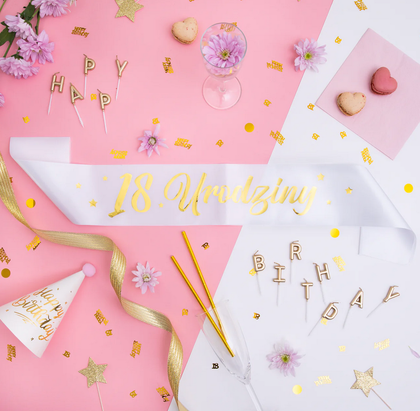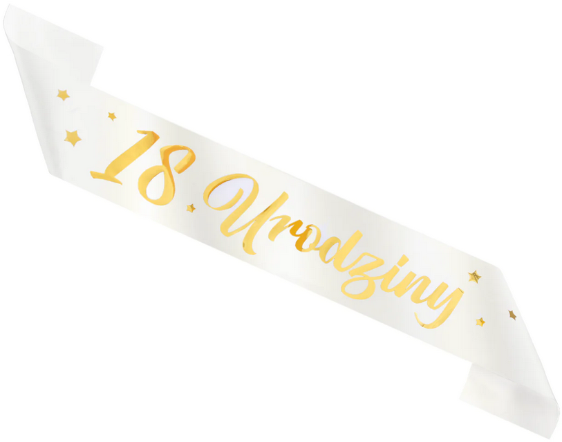 Satenasto bel lent z zlatim napisom 18. rojstni dan se bo podal k vsaki elegantni obleki.