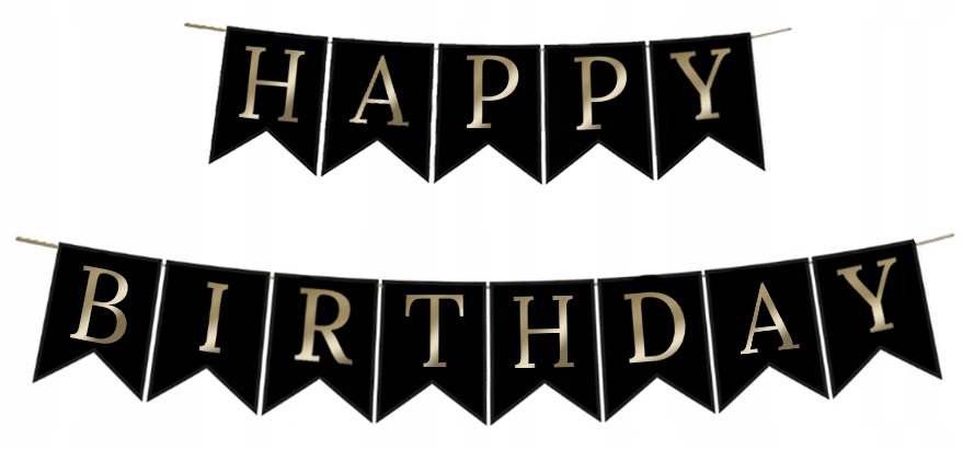 Črn rojstnodnevni transparent z zlatimi črkami, ki tvorijo napis SREČEN ROJSTNI DAN.