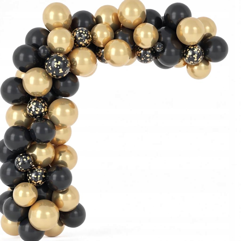 Črni, zlati in prozorni baloni z zlatimi konfeti so fantastična ideja za ustvarjanje čudovite balonske girlande za številne priložnosti.