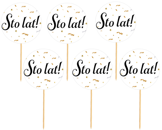 Dekorativni okraski STO LAT z belim ozadjem in črnim napisom, 6 kosov. Celoten opis