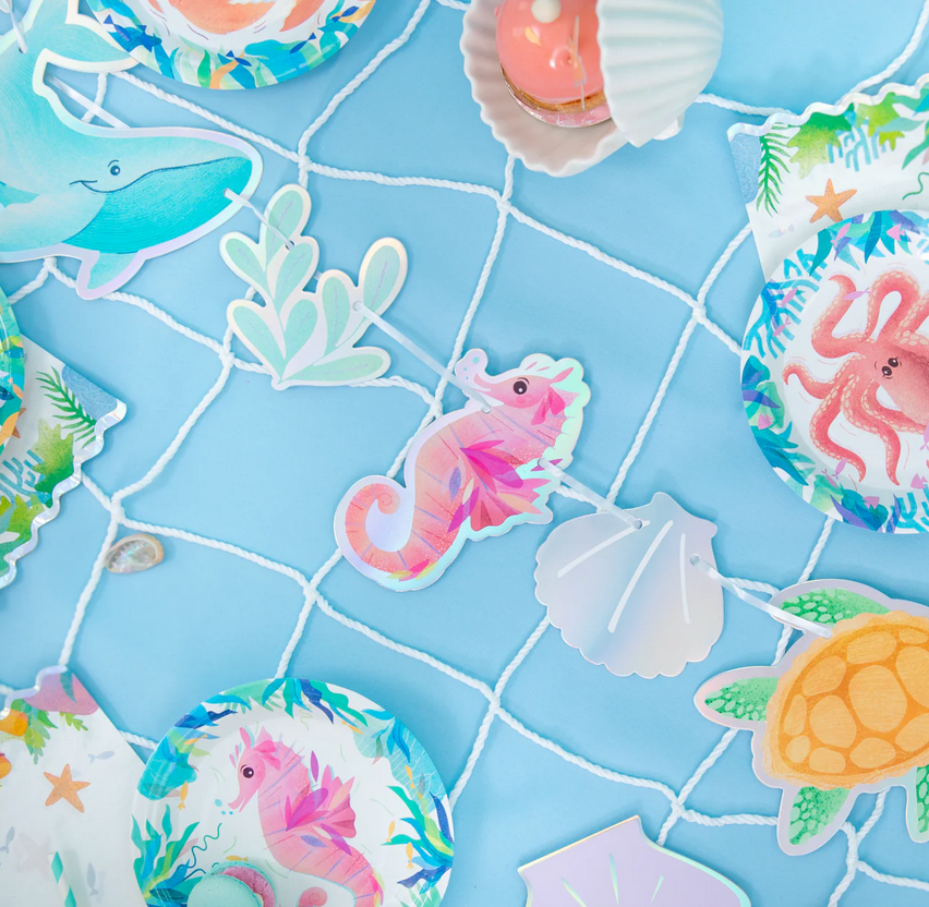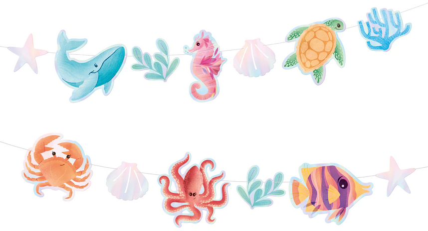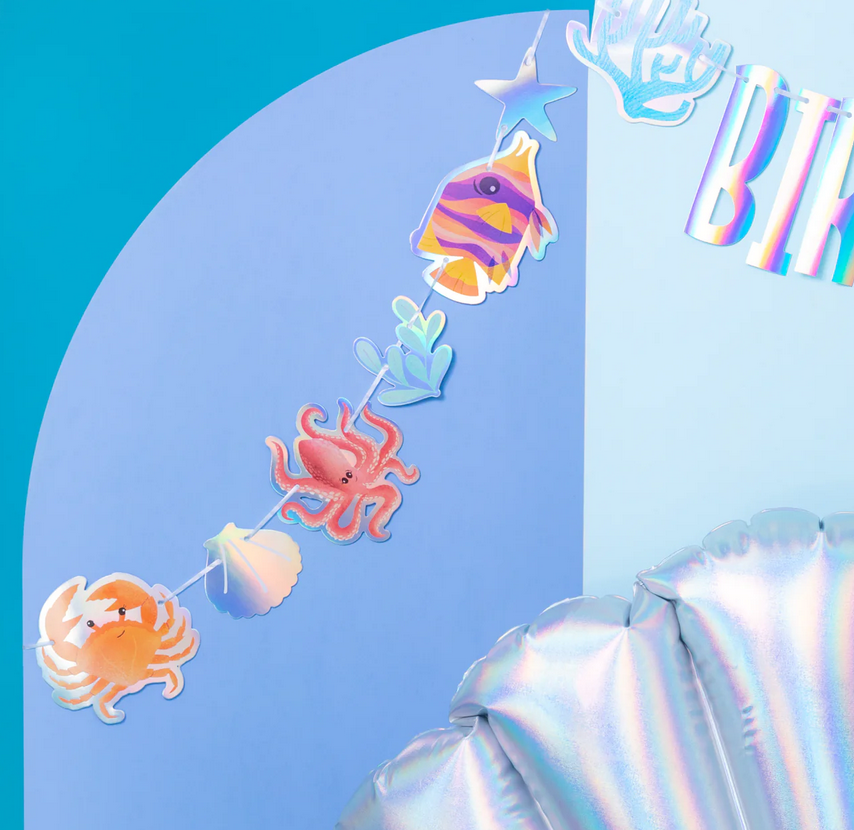 Girlanda iz kolekcije Ocean je čudovita dekoracija za otroške zabave, ki navdušuje z barvami in mavričnimi dodatki.