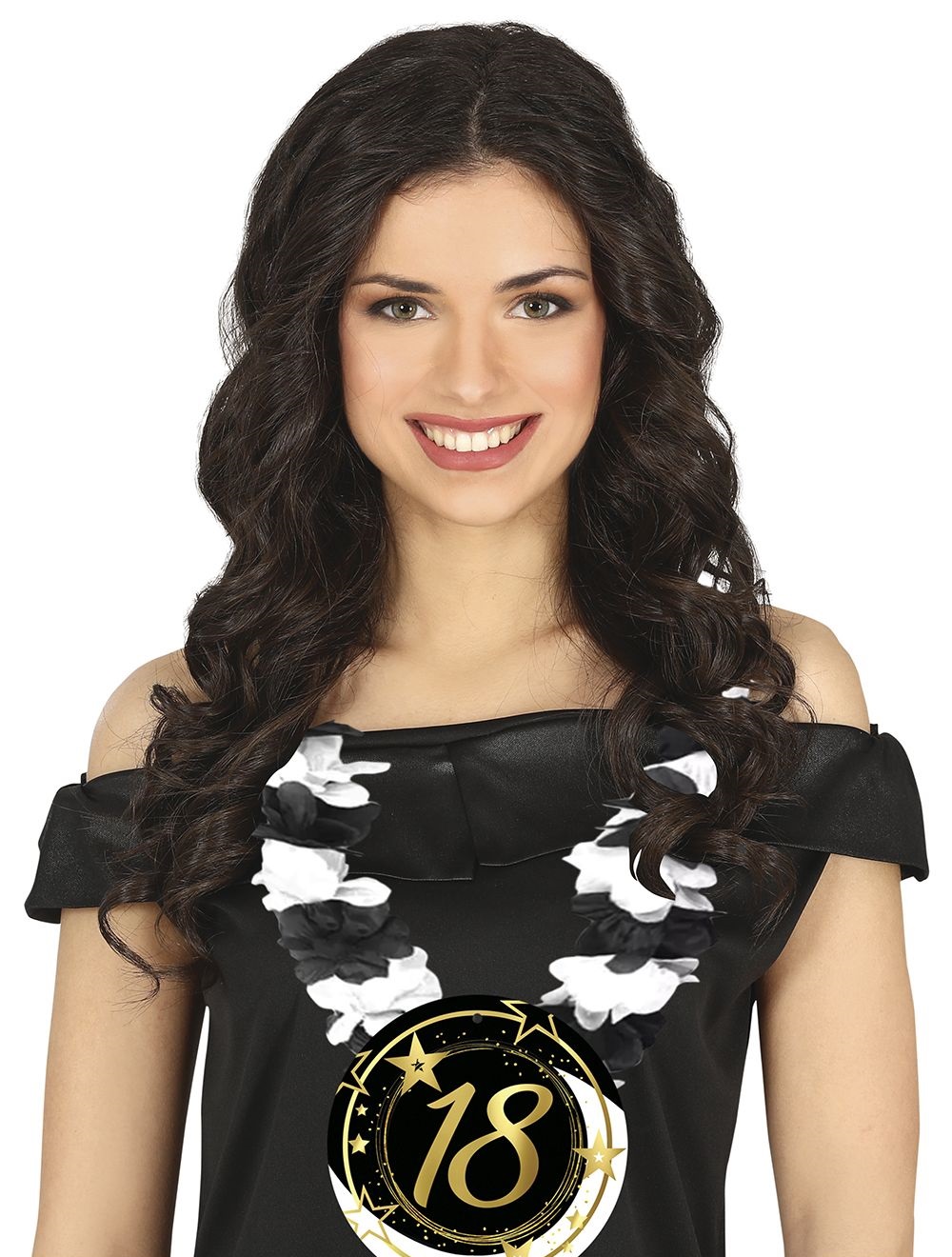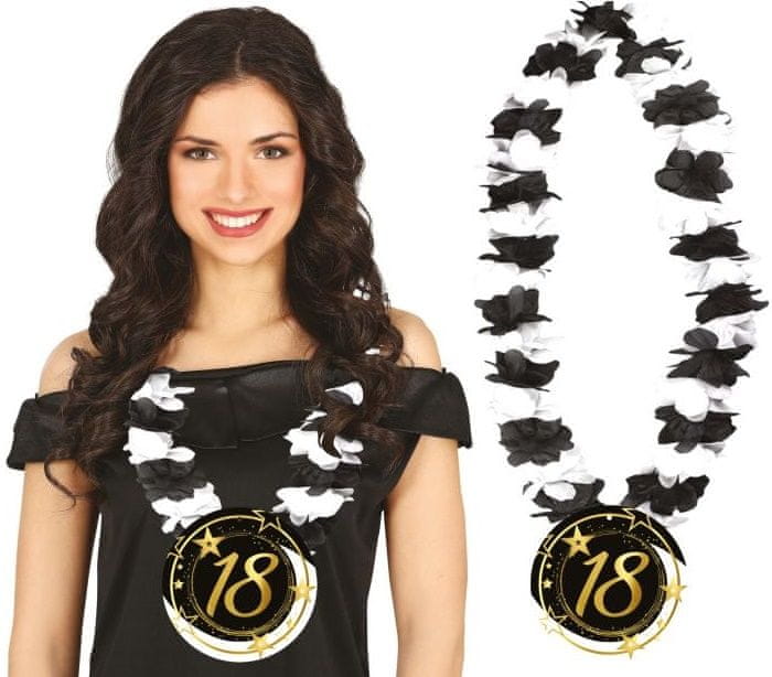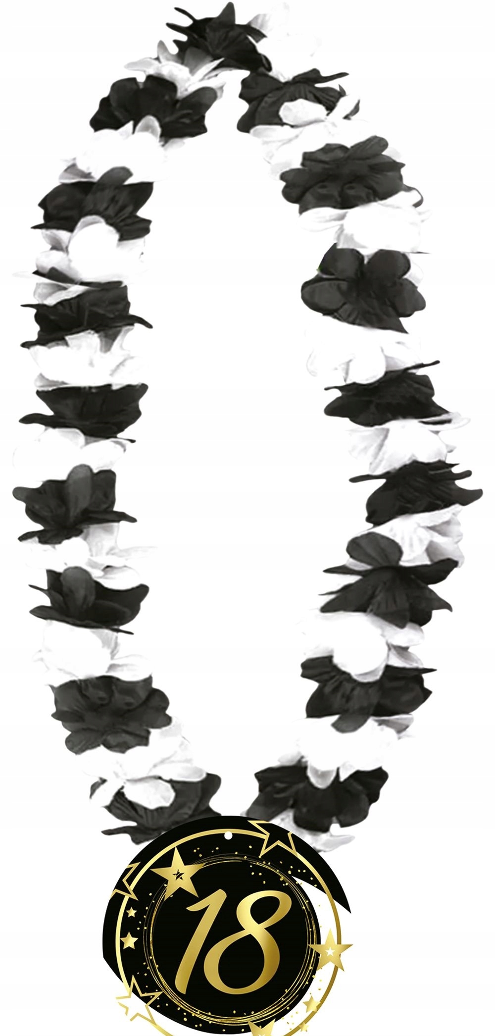 Havajska ogrlica boa črno-bele rože za 18. rojstni dan osemnajst, 300 cm Celoten opis