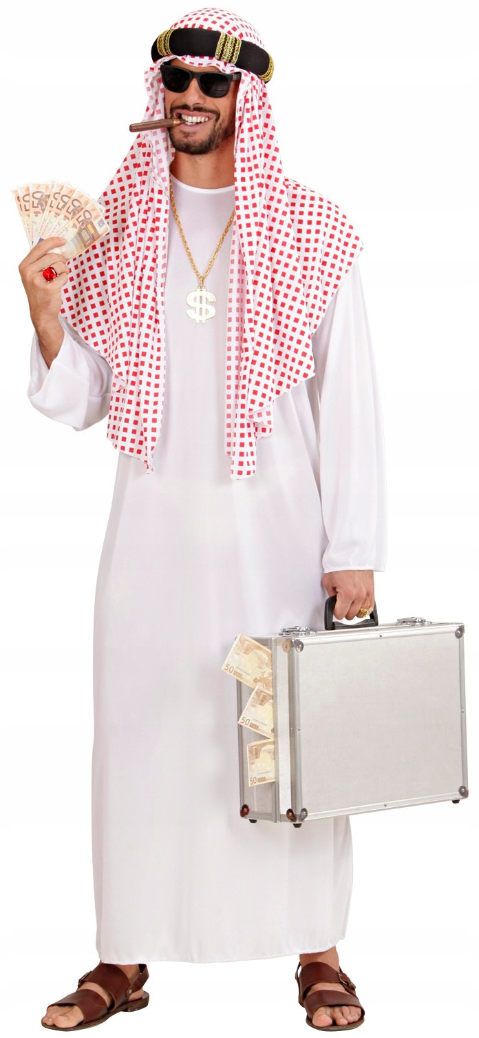 Kostum arabskega bogataša SHEIK Oil Prince za karnevalski ples, XXL Celoten opis