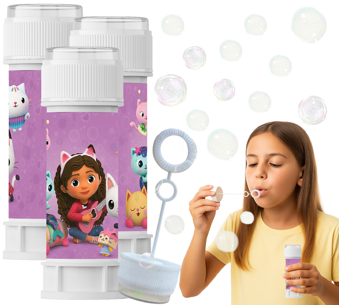 Razveselite svojega otroka s temi fantastičnimi milnimi mehurčki! Steklenička je okrašena z motivom priljubljene Gabi-jine mačje hišice, v notranjosti pa je veliko zabave.