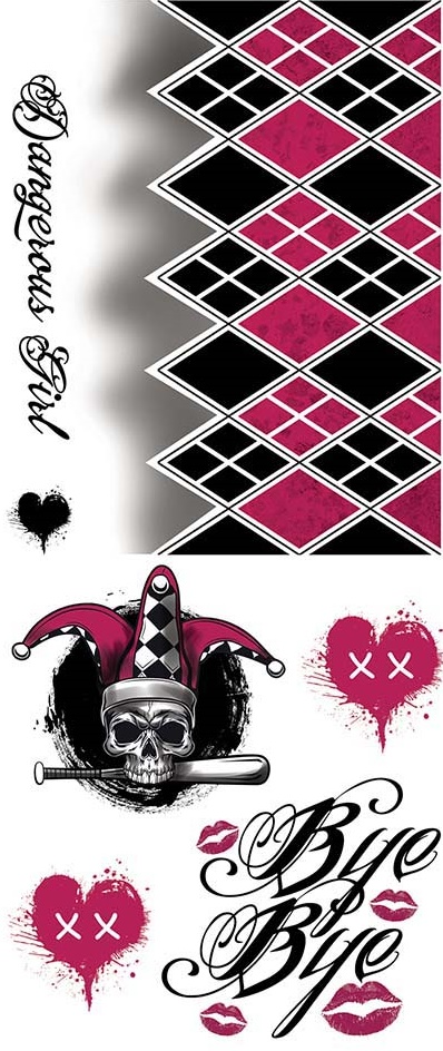 Poredne začasne tetovaže, ki so popolne za dopolnilo karnevalskega kostuma Harley Quinn v slogu stripa.