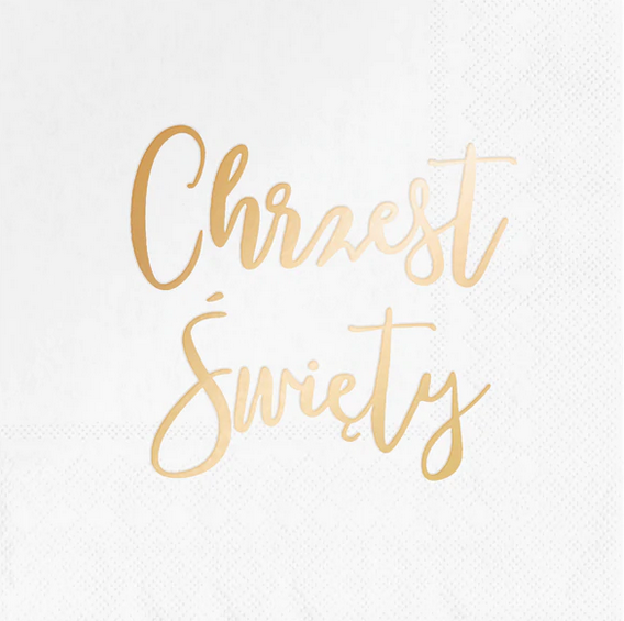 Bele papirnate servietke z zlatim kovinskim napisom Sveti krst.