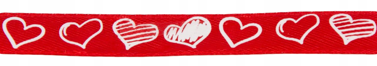 Rdeč satenast trak z belimi srčki Valentinovo ljubezen 12 mm Celoten opis