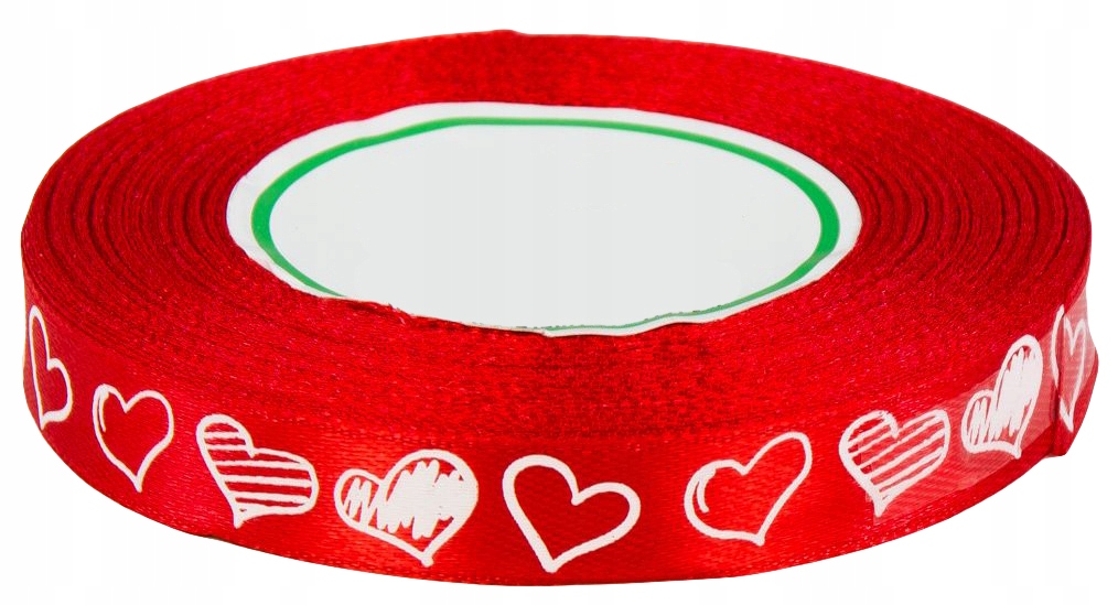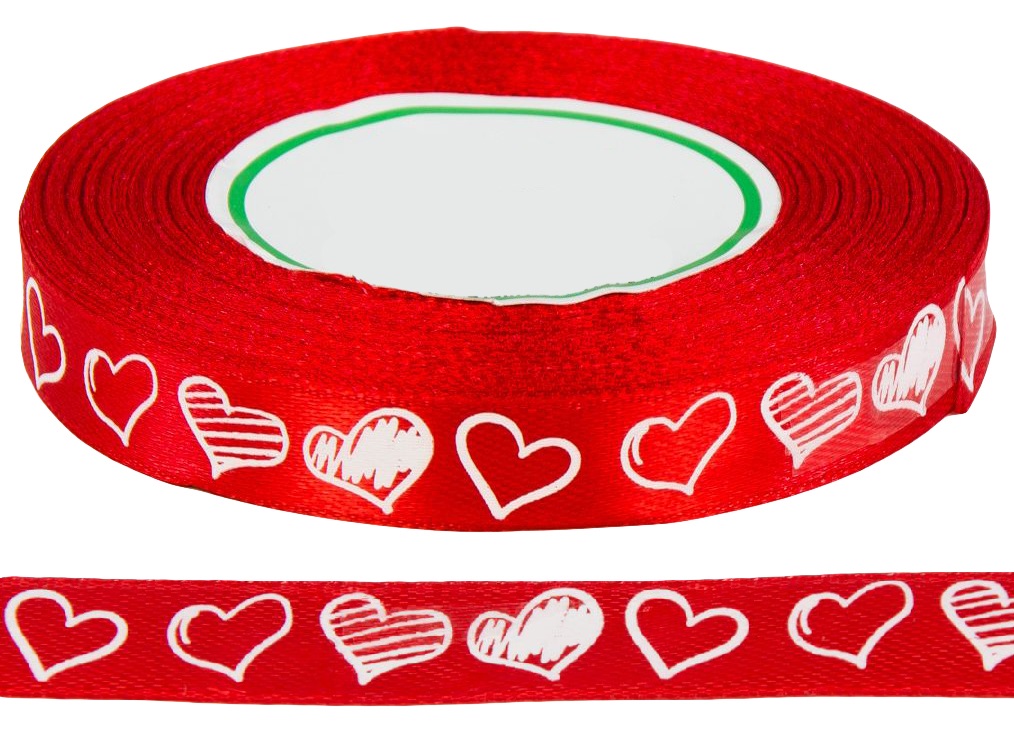 shumee Rdeč satenast trak z belimi srčki Valentinovo ljubezen 12 mm