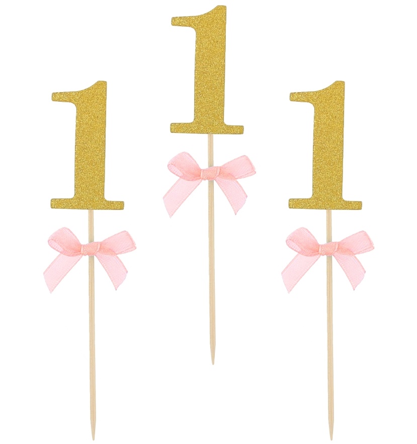 Zobotrebci – zobotrebci z zlato številko ena in rožnatimi pentljami so fantastična dekoracija za kolačke, torte in sladice.