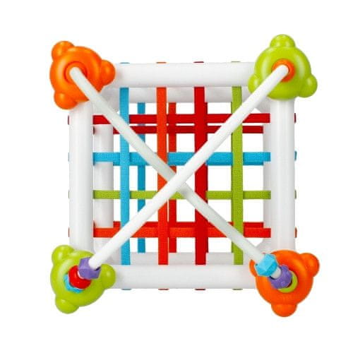Igrača z neštetimi možnostmi igre – BAM BAM senzorični bloki z dodatki. Ta neverjetna igrača ustvarja praktično neomejene možnosti igre, hkrati pa razvija kognitivne funkcije vašega malčka na več ravneh. Šest kock v čudovitih, živahnih barvah in različnih teksturah ter strukturah lahko spustite v razvrščevalnik kock in jih kombinirate na različne načine. Notranjost kock je napolnjena s premičnimi deli, zato vsako gibanje spremlja ropotuljica. Manipuliranje, metanje, zlaganje in povezovanje spodbuja fino motoriko, manipulativne sposobnosti, koncentracijo in razumevanje gibov oči in rok. Priloženi razvrščevalnik, katerega stene so spletene iz pisanih gumic, odlično služi kot razvrščevalnik, škatla za igrače in podpora za druge dodatke. Na robove je mogoče pritrditi dva obroča z perlicami, s katerimi boste z drsenjem razgibali majhne prstke. Poleg obročev se lahko na robove namesti tudi vetrnica, na kateri je vesela čebela, ki se vrti okoli svoje osi. Krila vetrnice so napolnjena z mehkimi, senzoričnimi mehurčki z različnimi teksturami. Ena stran je vtisnjena z geometrijskimi oblikami, nasprotna stran pa ima številke od 5 do 7. Senzorične kocke z dodatki ponujajo bogastvo možnosti za ustvarjalnost in neskončno igro. Igranje z vsemi elementi senzoričnih kock z dodatki omogoča razvoj koordinacije med rokami in očmi ter fine motorike, učenje in določanje zaporedja ter spodbuja spomin. Živahne barve, vzorci in raznolike teksture elementov spodbujajo čute vida, sluha in dotika. Igrača je izdelana iz najkakovostnejše plastike, brez ftalatov, v skladu z EN-71 in CE. Zagotavlja varno igro. Dimenzije / teža / baterije: dimenzije izdelka (D x V x G) [cm]: 15×15×15, dimenzije embalaže (D x V x G) [cm]: 17×22×16, teža izdelka brez embalaže [kg]: 0,35 kg, teža izdelka v embalaži [kg]: 0,48 kg, ne potrebuje napajanja z baterijami. Igrača je namenjena otrokom, starim 18 mesecev+. Pakirano v škatli z okencem.