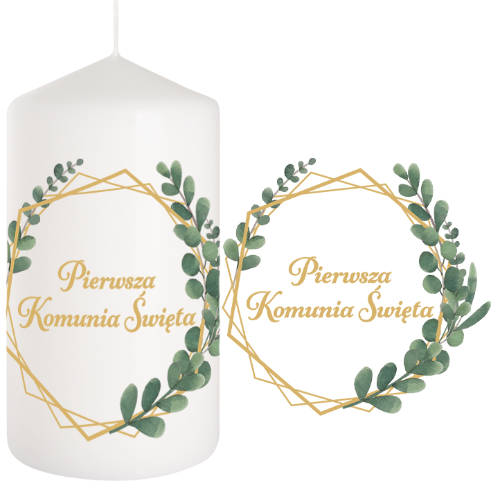 Valjasta obhajilna sveča z nalepko z napisom obhajila. Potisk lepo poudari njen značaj.