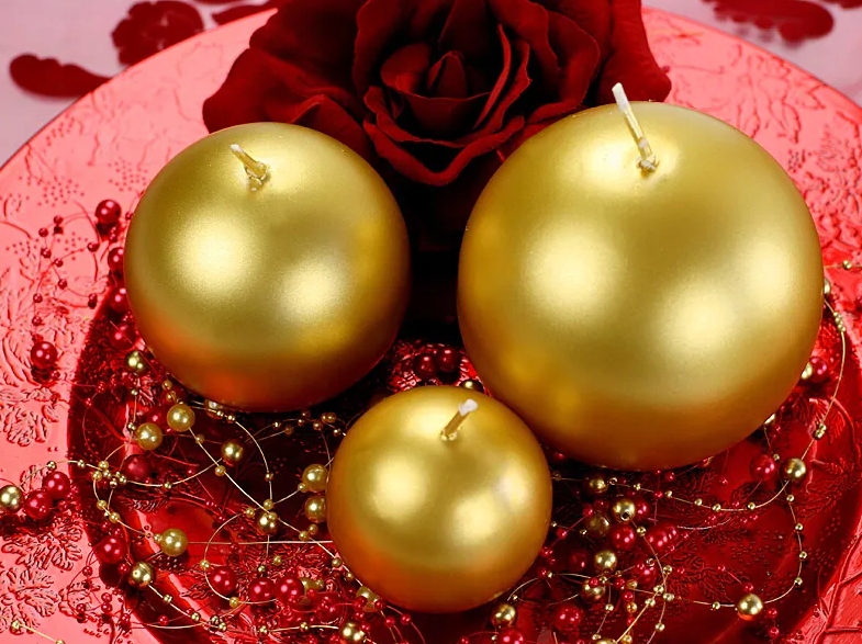 Sveča v obliki krogle (FI 80) kovinsko zlata 1 kos. Celoten opis