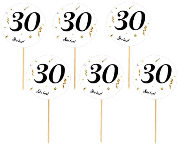 shumee Zapestnice za 30. rojstni dan, belo ozadje, črni napis, 6 kosov.