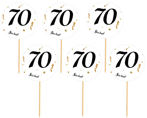 shumee Zapestnice za 70. rojstni dan, belo ozadje, črni napis, 6 kosov.