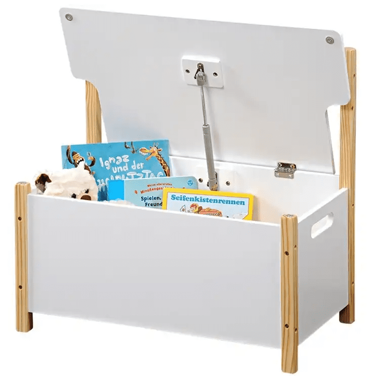 Večfunkcijska otroška klop, namenjena sedenju in shranjevanju igrač. Stabilen sedež se odpre in razkrije velik prostor za shranjevanje igrač in knjig. Noge iz FSC® certificiranega borovega lesa ne izgledajo le elegantno, ampak zagotavljajo tudi dobro oporo. Vaš otrok sedi na trajnostnem in udobnem izdelku ter se na igriv način uvaja v okoljsko ozaveščenostjo.