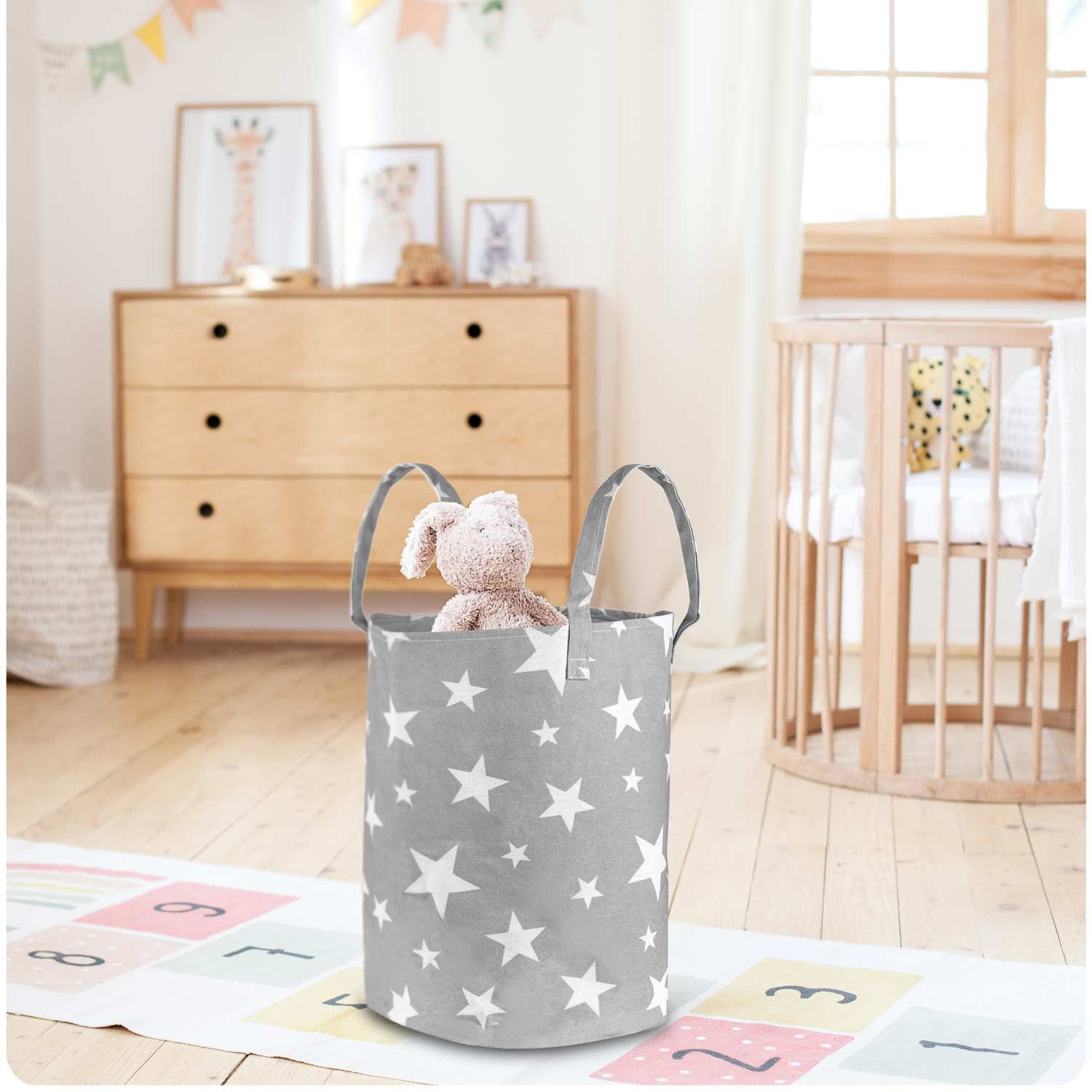 Nukido košara za igrače - siva z zvezdicami