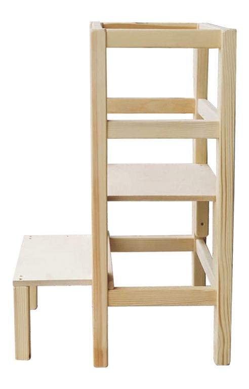 Otroški pomagalček, izdelan iz lesa smreke in jelke, impregniran z lakom na vodni osnovi, višino 85 cm, širino 40 cm in globino 35 cm je kakovosten in priročen pripomoček za vašega otroka. Celoten opis