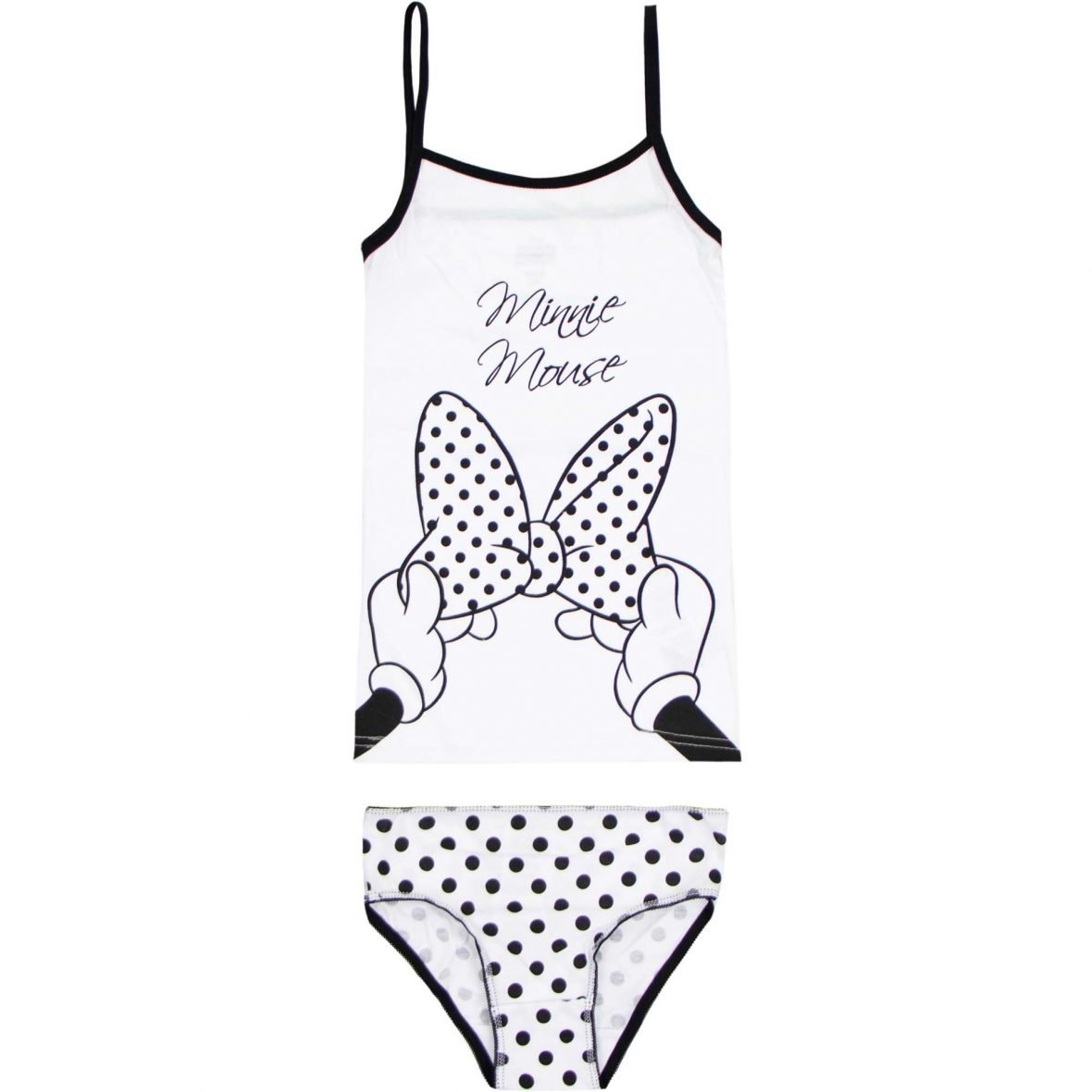 Čudovit, mehek komplet spodnjega perila z motivom Miške Minnie. V kompletu so 1 spodnje hlačke in 1 spodnja majčka. Celoten opis