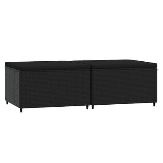Vidaxl Vrtni stolčki za noge z blazino 2 kosa črn poli ratan