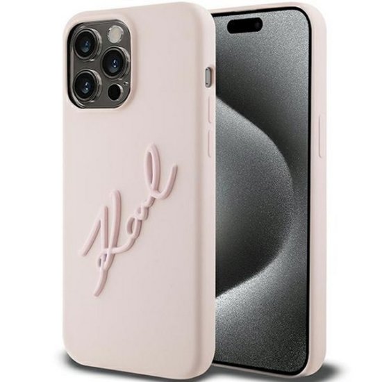 Karl Lagerfeld Ovitek Karl Lagerfeld za iPhone 14 / 15 – Pink Karl Script