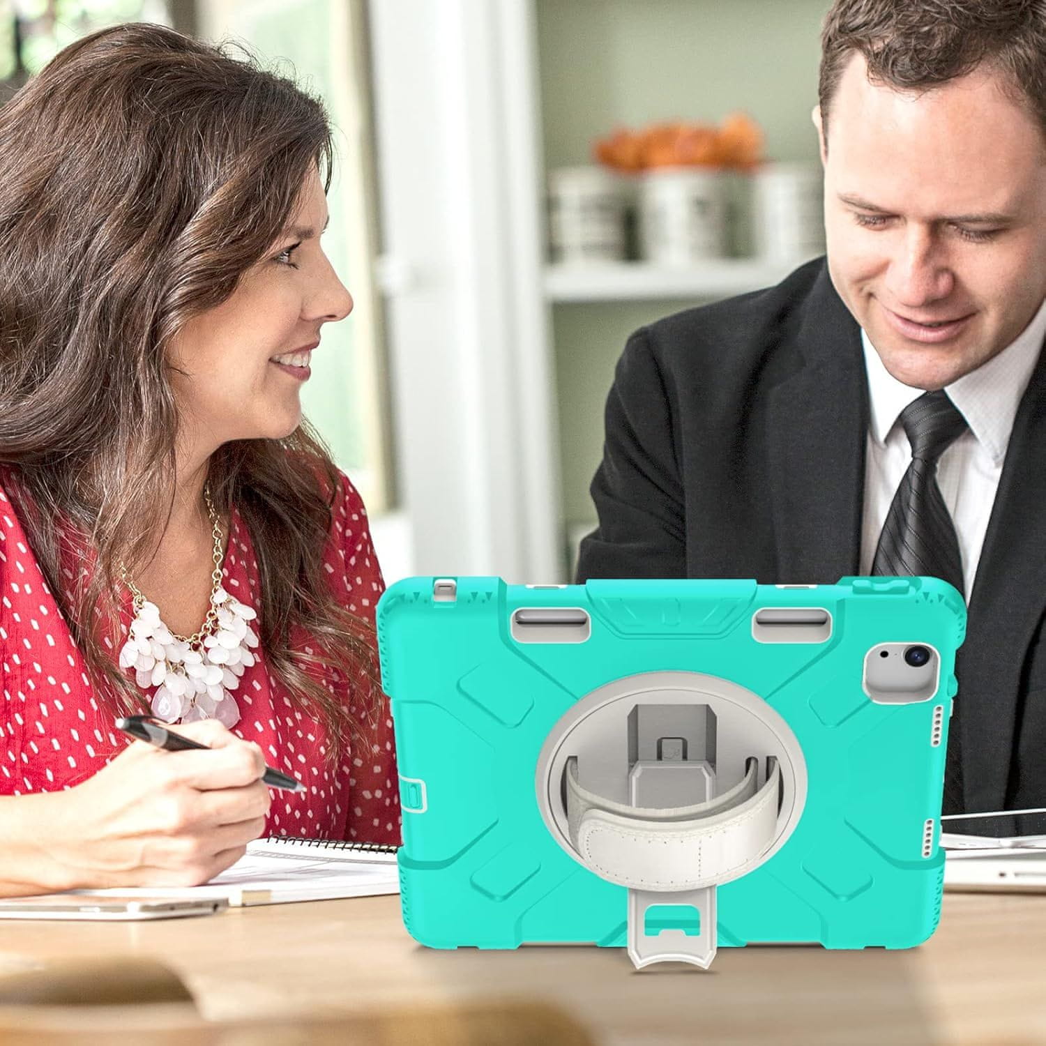 Nikcorp Vzdržljiv ovitek za iPad Air 5/4 10.9, 360° vrtljivo stojalo, ročaj in prostor za pisalo, mint