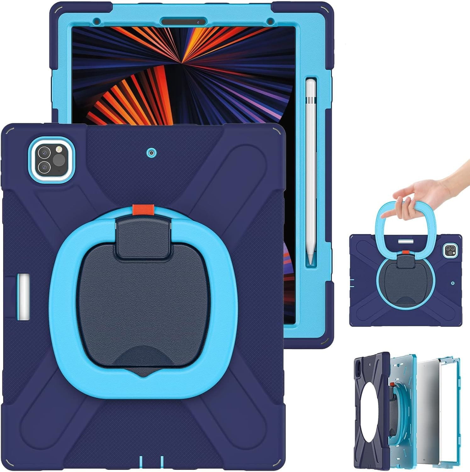 Nikcorp Vzdržljiv zaščitni etui za iPad Pro 11 z vrtljivim stojalom, držalom za pisalo in nastavljivim ramenskim pasom, moder