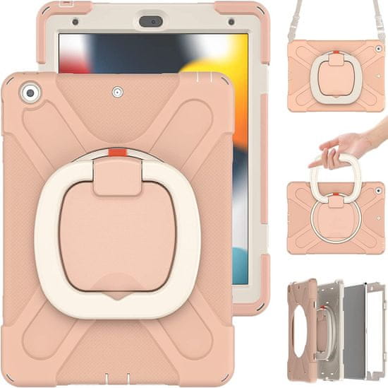 Nikcorp Vzdržljiv zaščitni etui za Amazon Fire HD 10 Plus, 360° vrtljivo stojalo, ročaj in ramenski pas, roza barve