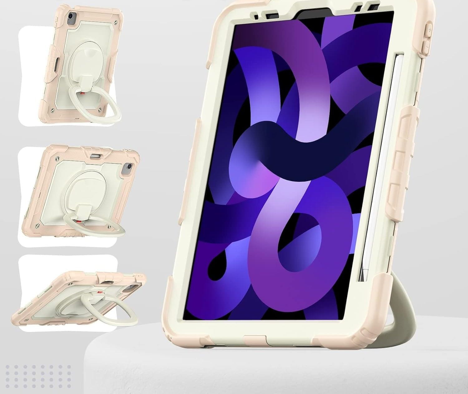 Nikcorp Vzdržljiv zaščitni ovitek za iPad Mini 6 8.3" z vrtljivim stojalom, ročajem in prostorom za pisalo, roza barve