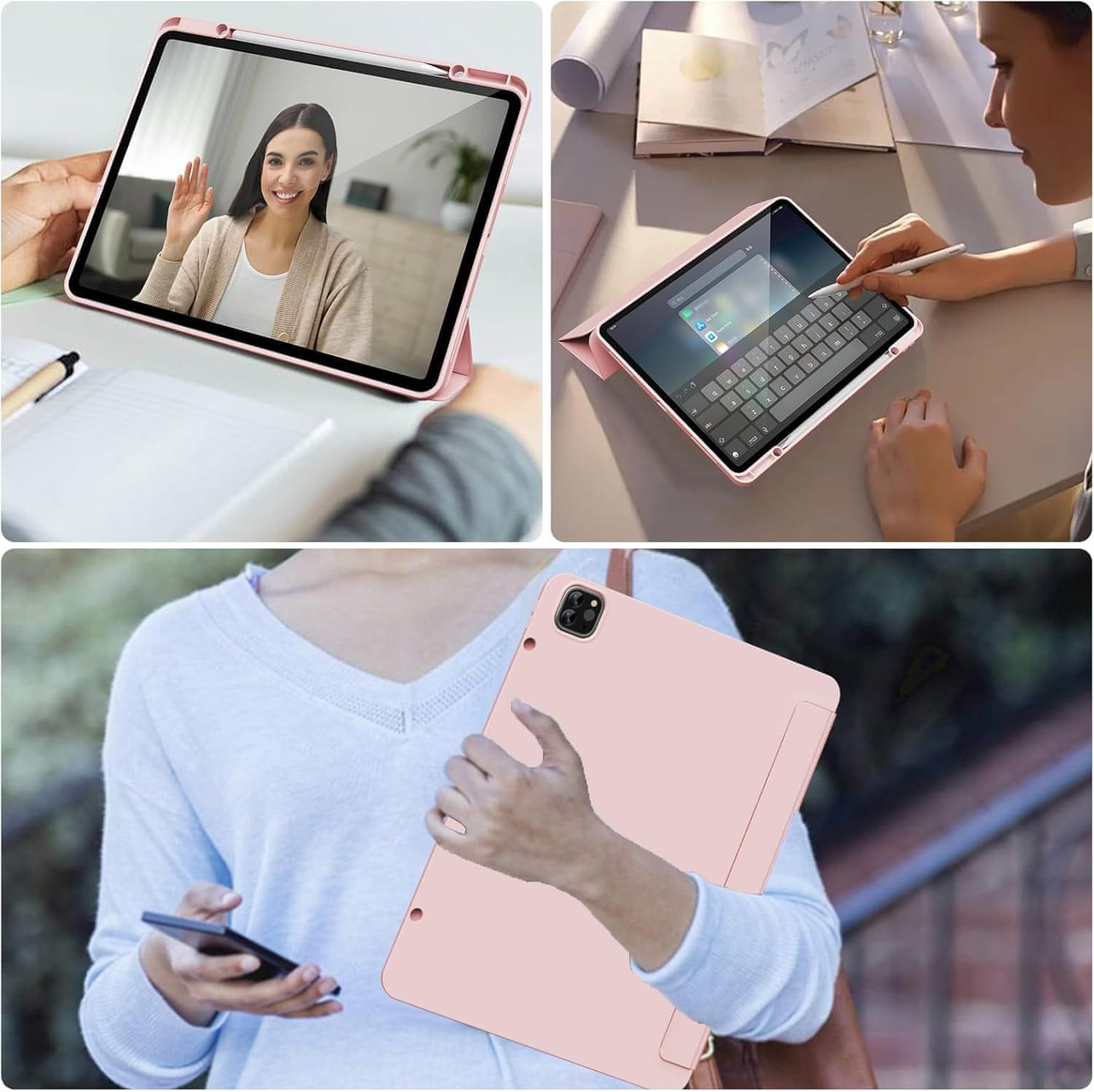 Nikcorp Zaščitni ovitek etui za iPad Air 13" (2024) in Pro 12,9" (2022/21) s prostorom za pisalo, prožen TPU, roza barve