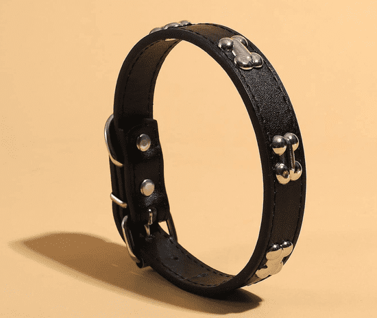 Camerazar Kožna ovratnica za pse, prikupna, s črnimi zapestniki, nastavljiva