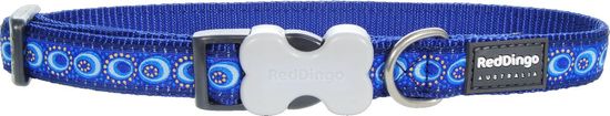 Modra najlonska pasja ovratnica z vzorcem Cosmos avstralske znamke Red dingo . Te ovratnice so kakovostne, trpežne, močne in psu odlično izgledajo. Ovratnice so narejene iz zelo kvalitetnega in močnega najlonskega materiala. Edinstvena zaponka Bucklebone je ena najmočnejših zaponk na trgu.