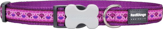 Vijolična najlonska pasja ovratnica s karnevalskim vzorcem avstralske znamke Red dingo . Te ovratnice so kakovostne, trpežne, močne in psu odlično izgledajo. Ovratnice so narejene iz zelo kvalitetnega in močnega najlonskega materiala. Edinstvena zaponka Bucklebone je ena najmočnejših zaponk na trgu.