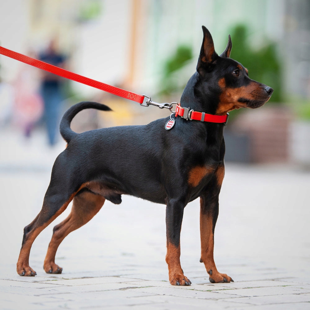 Zaradi kombinacije visokokakovostnih materialov in močnega, stilskega okovja iz titan-sive, lahke kovine, povodci in ovratnice v tej seriji so izjemno funkcionalni. Serija WATERPROOF je na voljo v šestih barvah, vključno s črno. Na zaponko lahko vgravirate podatke o psu. Dodatno vsaki ovratnici dodamo QR identifikator, ki je nekakšna identifikacijska izkaznica psa – Smart ID (to je dodatek k ovratnici, združljiv s samostojno aplikacijo, ki lahko zahteva doplačilo).