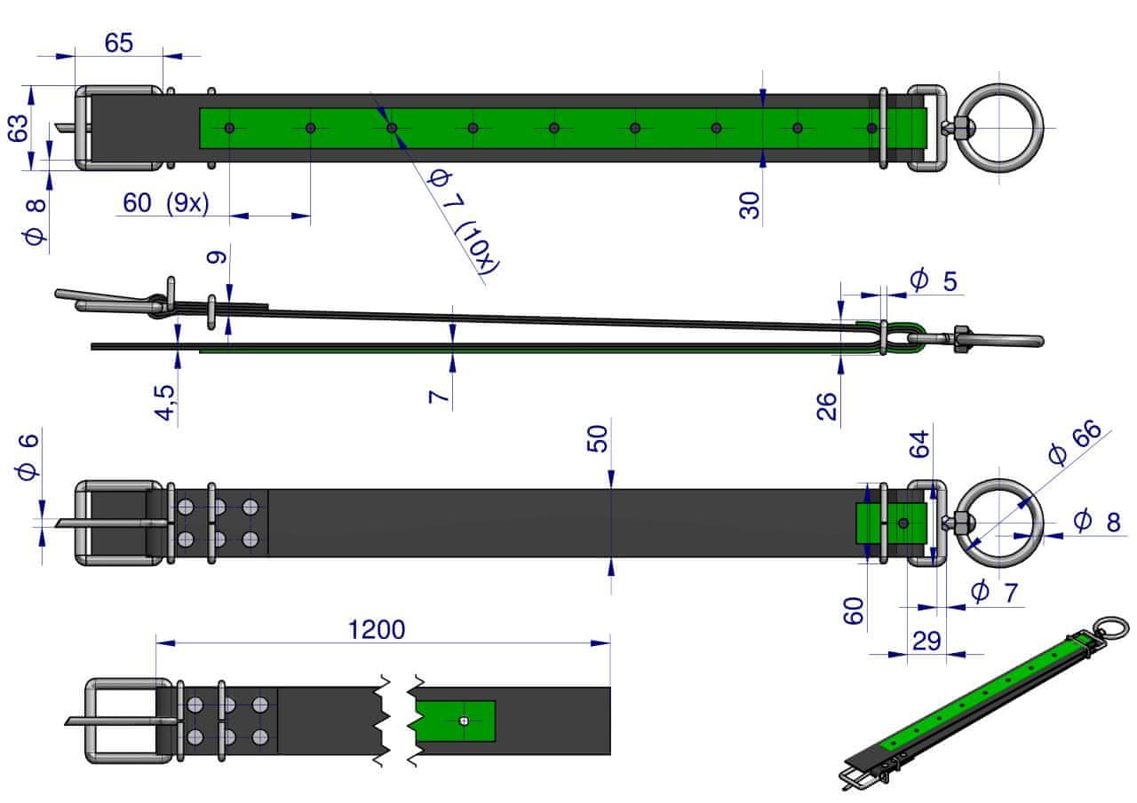 shumee Široka ovratnica, 120 cm x 5 cm z vrtljivim 8 mm, Royal Farm