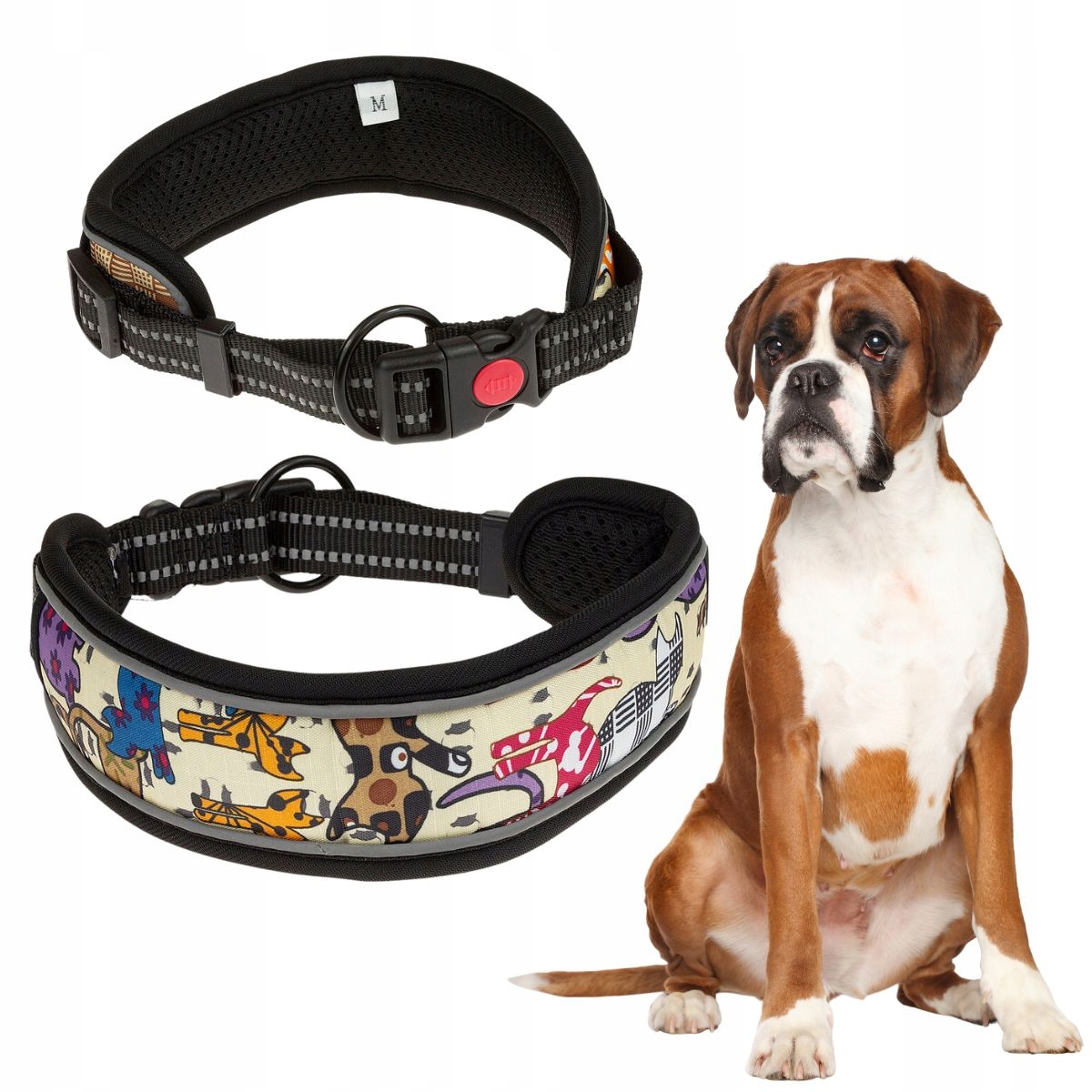 ŠIROKA ovratnica za velike pse z mehko podlogo in odsevniki