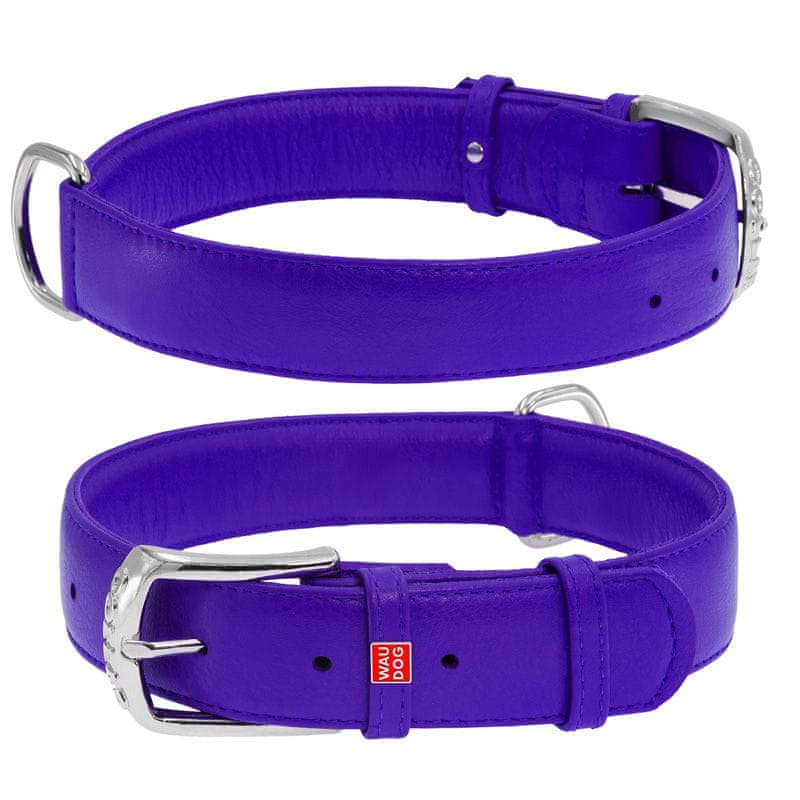 WAUDOG Dvoslojna pasja ovratnica iz kakovostnega usnja v vijolični barvi 18-21 cm, širina: 9 mm vijolična